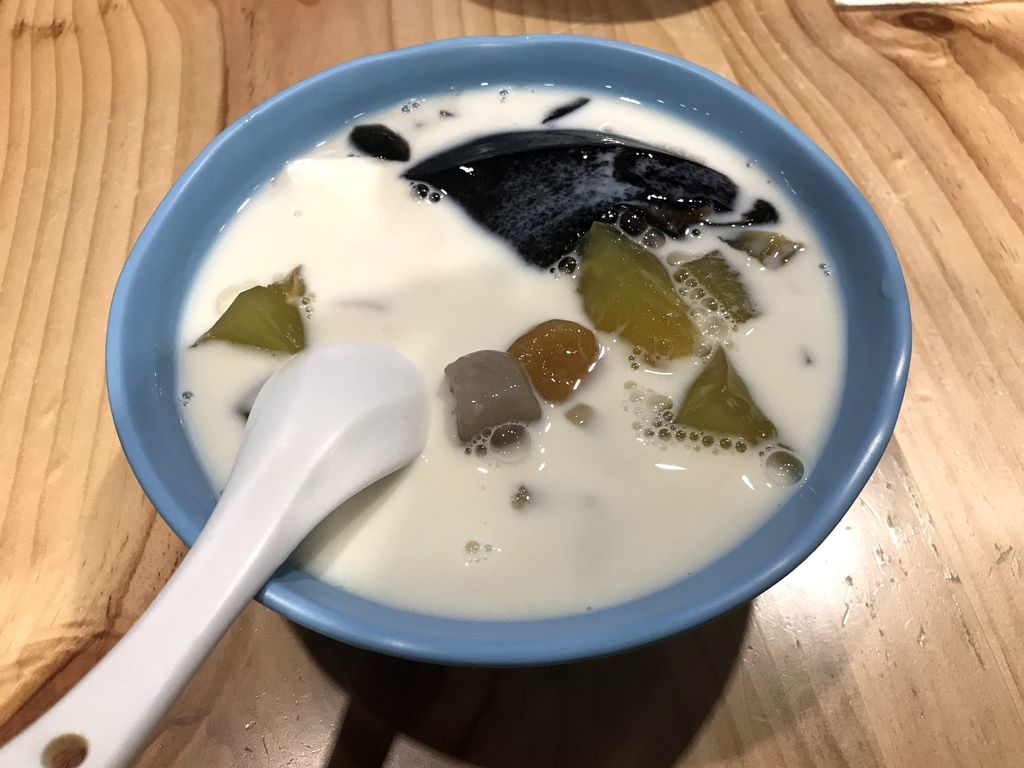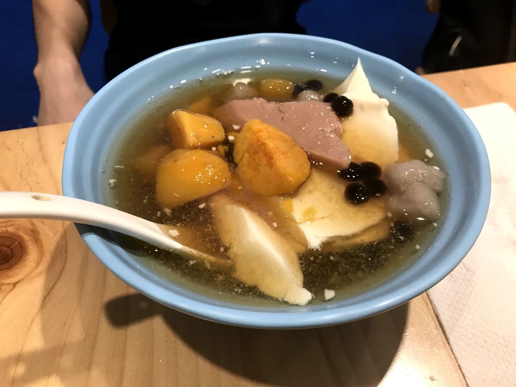 豆花口感順滑,而且配料也蠻多種的,綜合豆漿豆花可以選擇四種配料,價格NTD55,加上用餐環境還不錯,CP值見仁見智,個人認為還可以。可以當作飯後甜品或是宵夜。